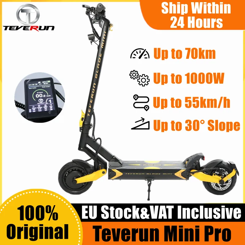 TEVERUN BLADE MINI PRO Kickscooter 48V 18.2Ah double moteur 500W * 2 Scooter électrique écran TFT 9*3.0 pneu Stock européen