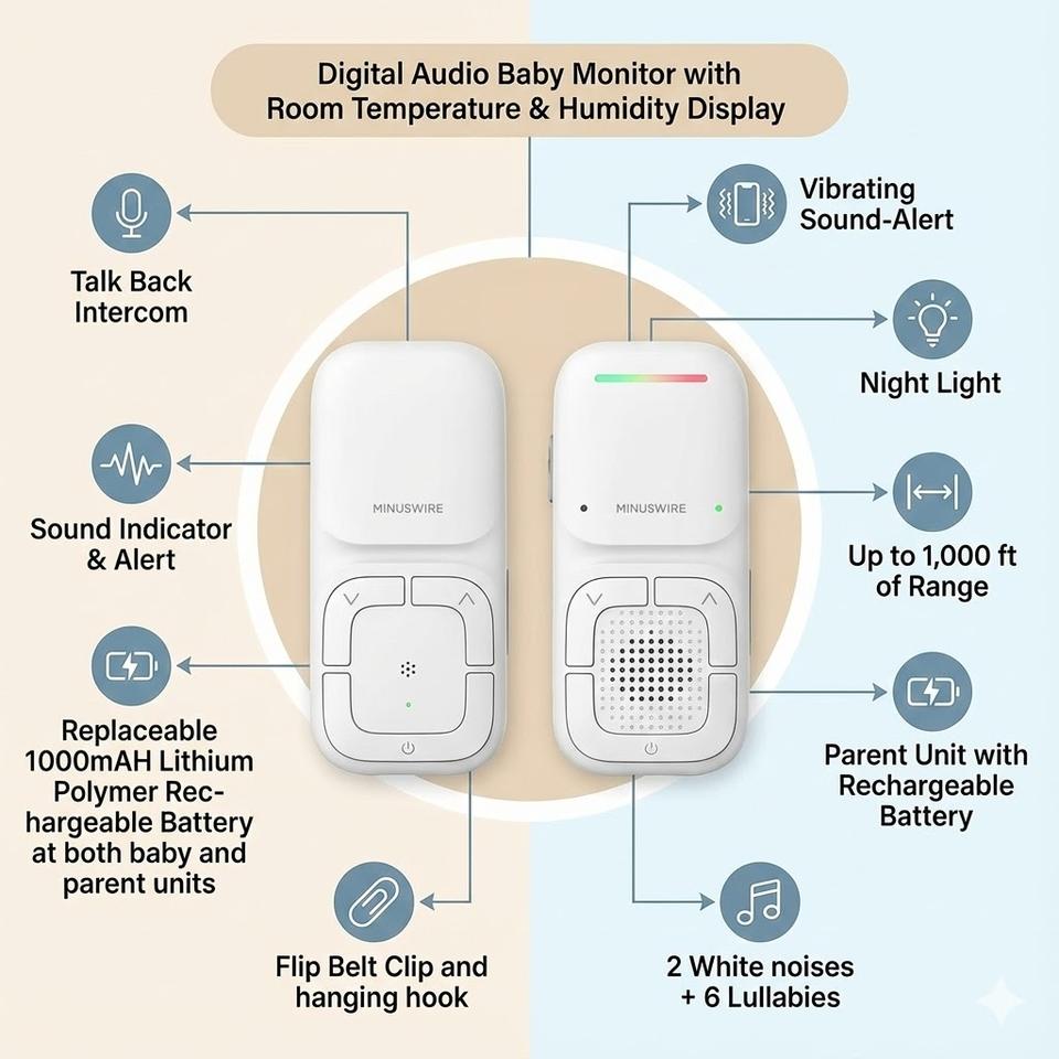 Berceuses, Rappel de l'alimentation, Vision nocturne, PAN-TILT, Audio bidirectionnel, Surveillance de la température, Built-in SirèneUsages spéciaux