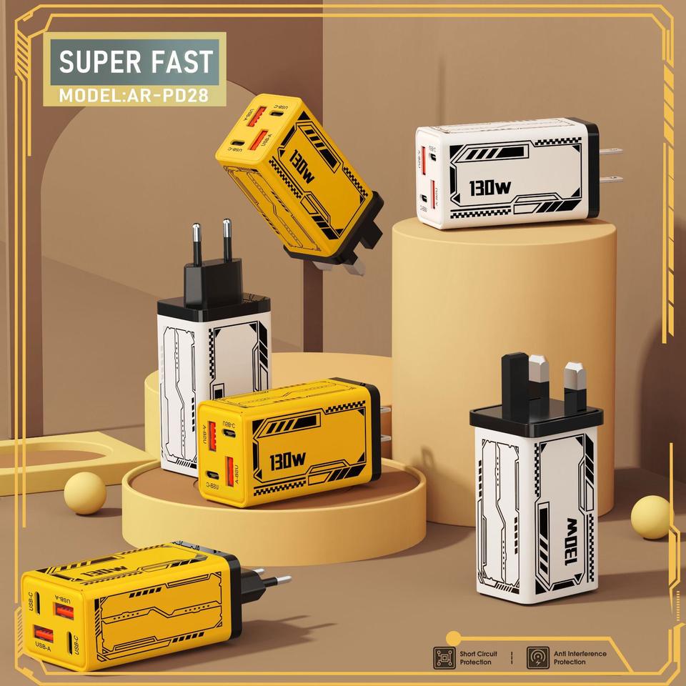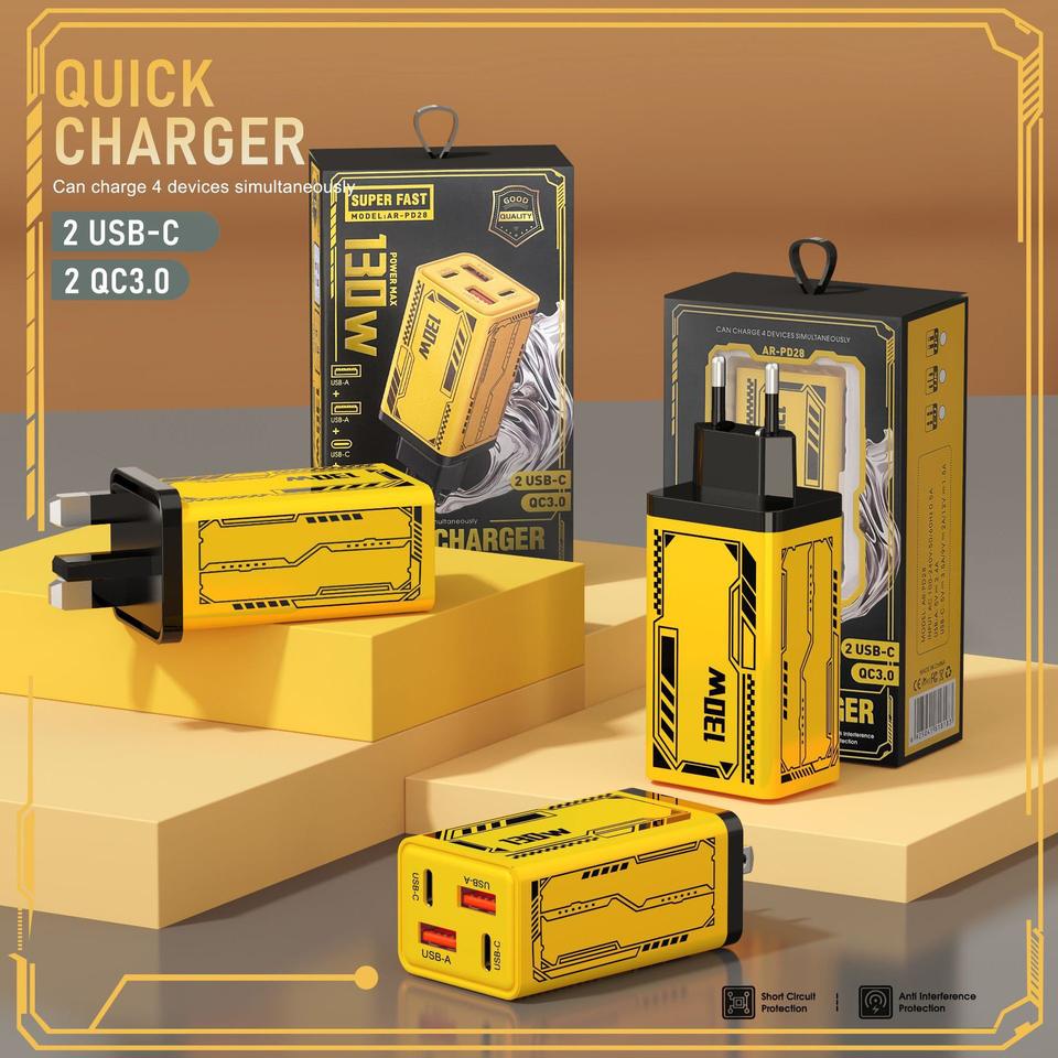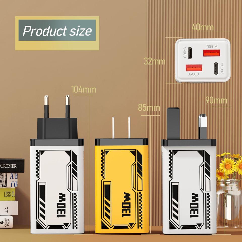 Prise UE/US/UK 130W 4 Ports USB Chargeurs rapides pour téléphone portable 130W USB Type C QC3.0 Chargeur mural Adaptateur de voyage Usb-c
