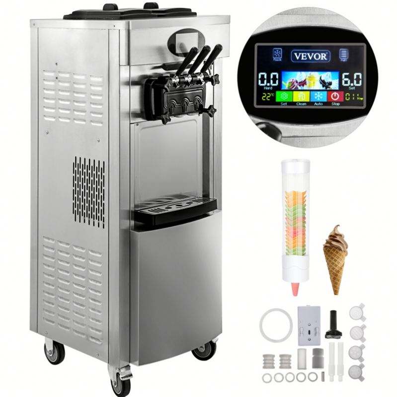 Entrepôt de l'UE 2200w Machine à crème glacée commerciale avec 2 + 1 saveurs Machine à crème glacée maison