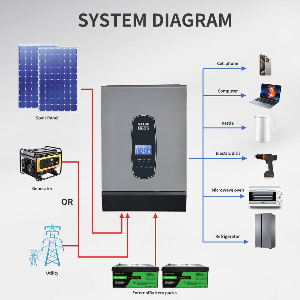 Système d'onduleur solaire hybride entrepôt de l'UE 3,6 KW 6,2 KW 11KW système solaire hors réseau 24V 48V CA contrôleur MPPT monophasé avec WiFi