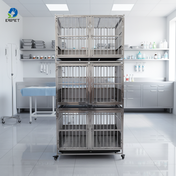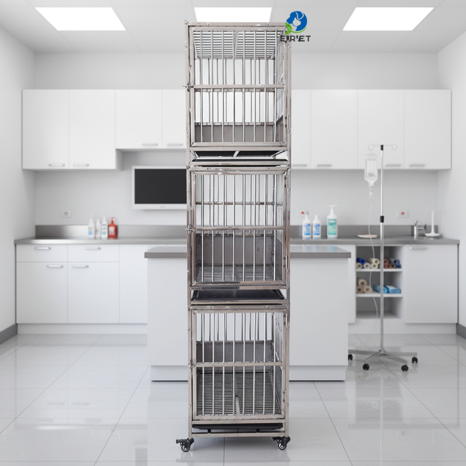 EUR VET Meilleur prix, cage pliable à trois étages en acier inoxydable pour chiens et chats, équipement vétérinaire