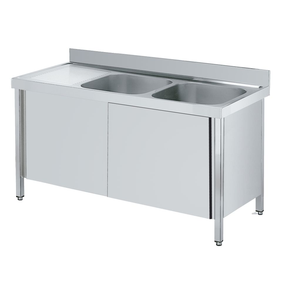 EURAST 2213I061 Sink Doors 1 Shelf 1 Drainer 2 Bowls 500x400x250-1600x600x850mm Nano Surface Granite Quartz Two-Hole Faucet