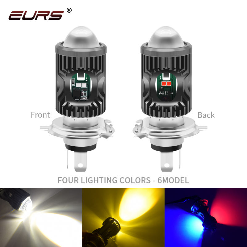 Phares de moto EURS 4 couleurs H4 à trois griffes H6 LED BA20D Blanc Jaune Rouge Bleu Clignotant Lumière Hi-Lo Ampoules Laser Spot