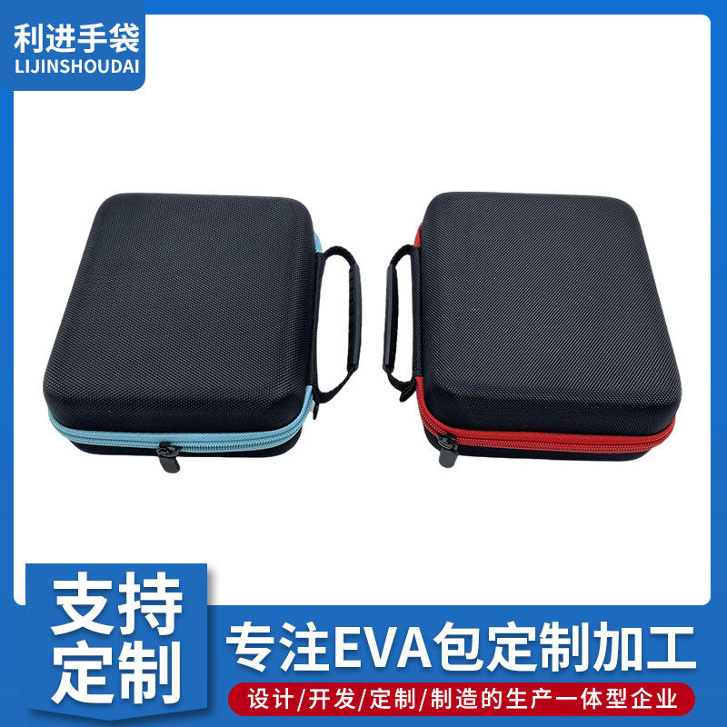 Étui de rangement EVA pour appareils électroniques, noir avec fermeture éclair rouge, emballage étanche à compartiment unique