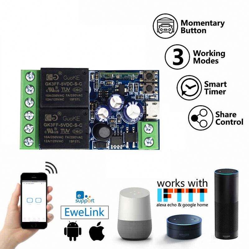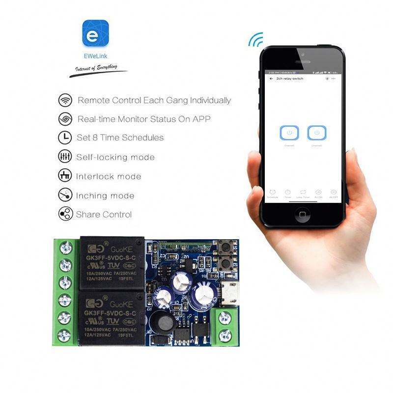 EWelink EasyLink WiFi Smart Switch 2CH Two Way Circuit Breaker USB5V DC7V 12V 24V 48V