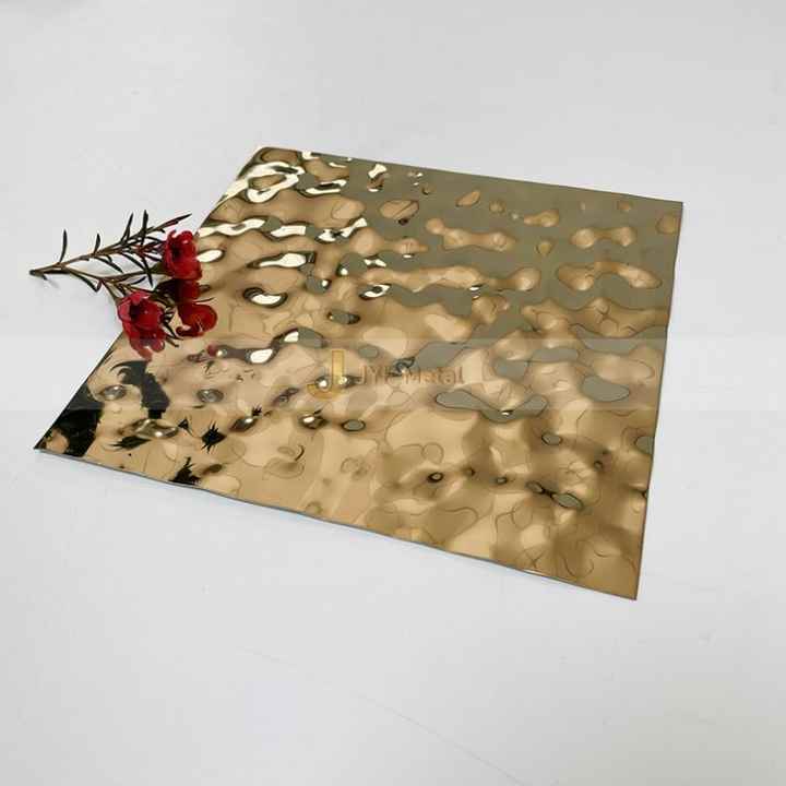 Panneau décoratif en acier inoxydable EX273 PVD, finition miroir, motif vague d'eau en relief, SS 304 316 8K, épaisseur 0,5 mm à 3 mm, effet ondulation d'eau