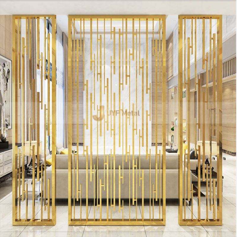 EX325 Paravents pliables modernes en acier inoxydable découpé au laser avec cadre métallique et cloison en verre