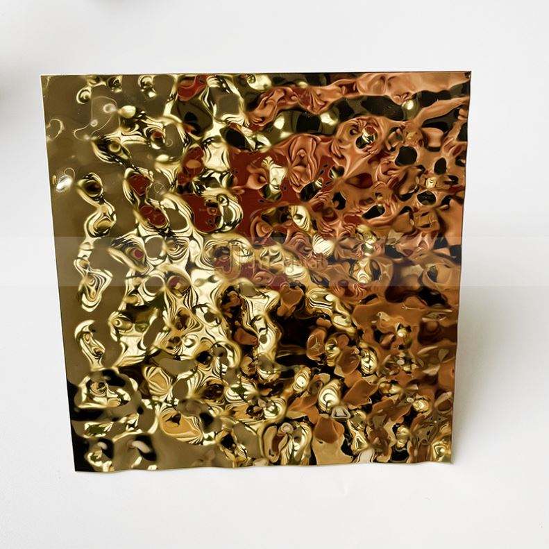 Plaques en acier inoxydable EX425 PVD Gold Water Ripple, panneaux muraux 3D ondulés pour la décoration d'hôtel