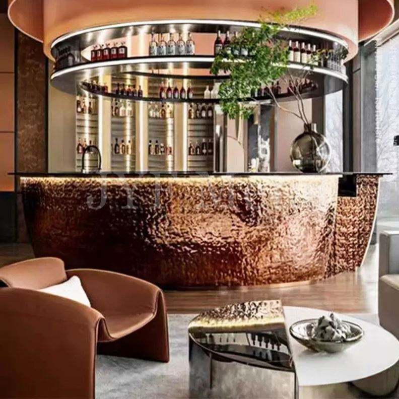 Comptoir de bar Art Déco multifonctionnel personnalisé EX614 en acier inoxydable étanche avec éclairage LED pour la décoration de boîtes de nuit et d'hôtels