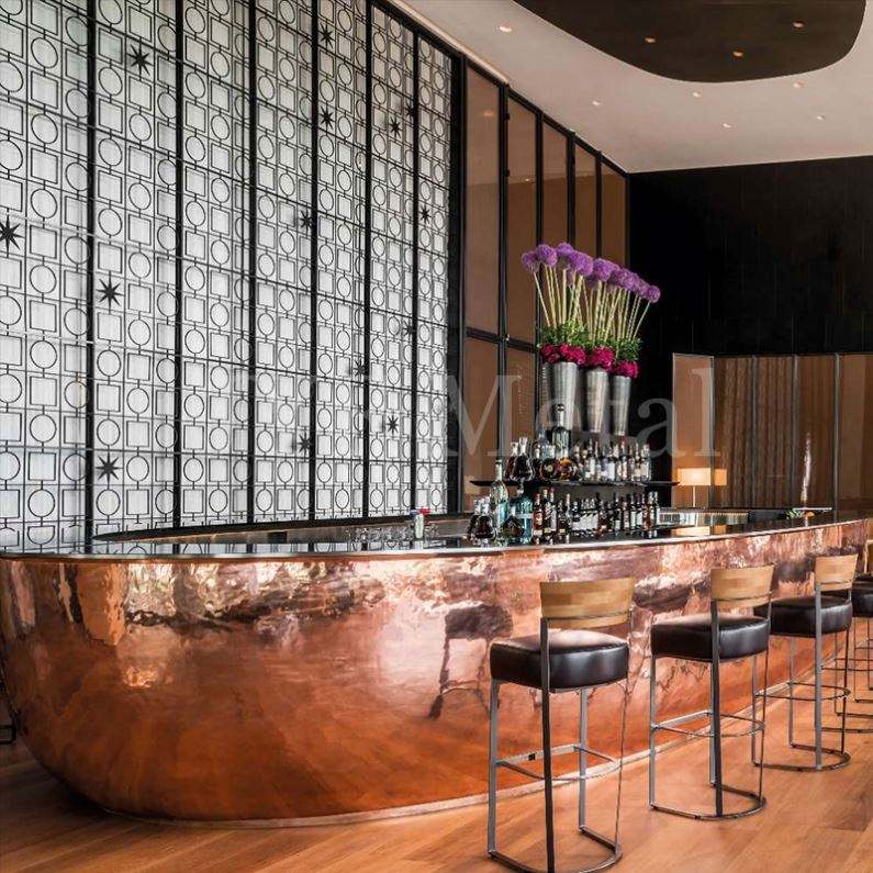 Comptoir de bar en acier inoxydable de qualité architecturale EX618 pour projets d'aménagement intérieur de salons d'hôtels et de restaurants