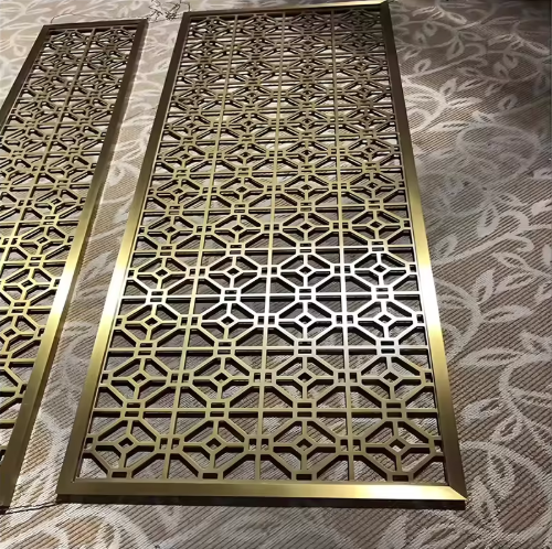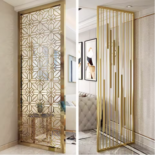 EX710 Paravent d'art pliable moderne en acier inoxydable découpé au laser pour la séparation de salons de luxe
