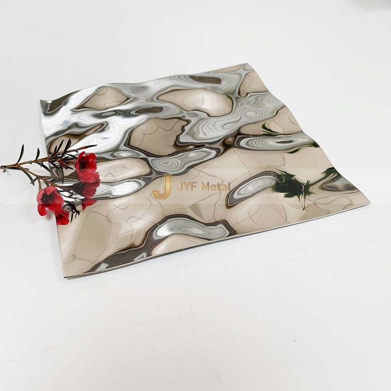 Panneaux muraux décoratifs EX741, tôle martelée à effet vague d'eau, couleur PVD 304, tôle en acier inoxydable estampillée à effet vague d'eau, finition miroir