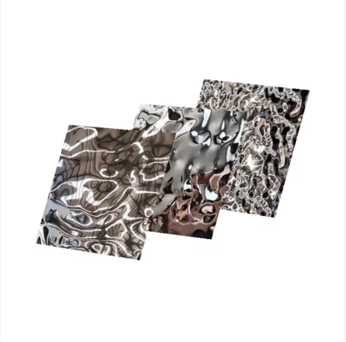 Panneaux muraux en acier inoxydable décoratifs et colorés EX782 314, effet vague d'eau, design 3D en métal.
