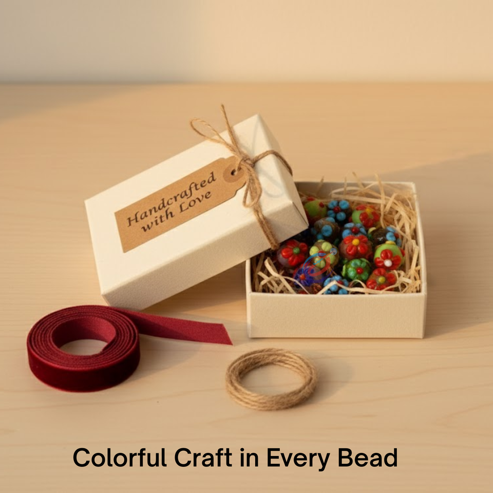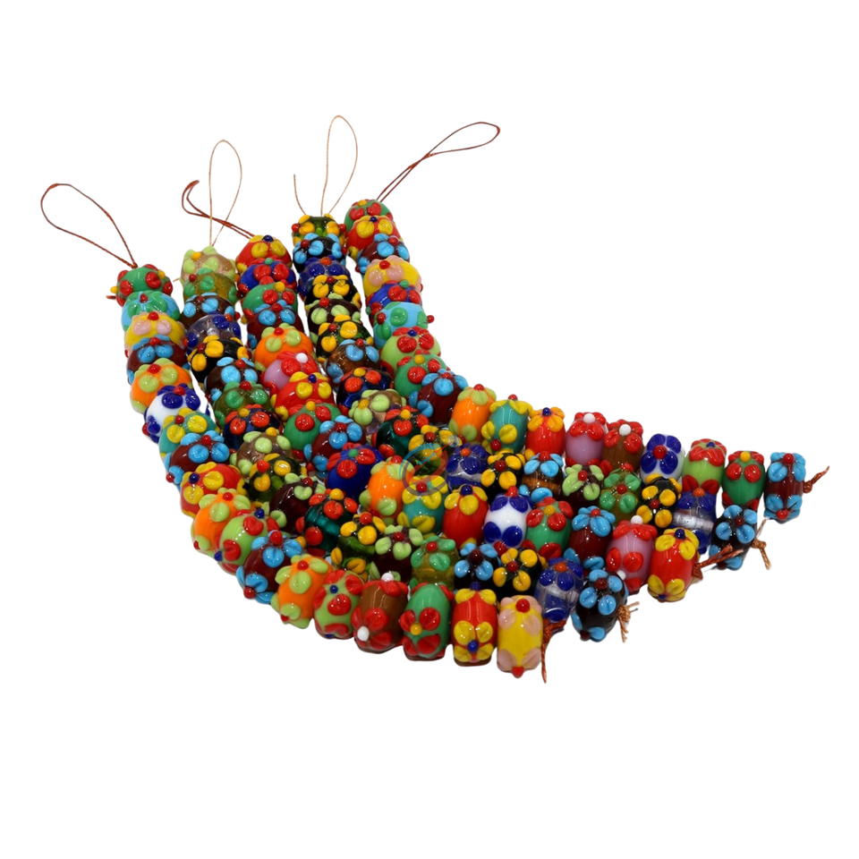 EXCEL EXPORTS Perles en verre soufflé artistiques multicolores à motifs floraux | Fil de 8 pouces | Design ethnique fait main | Décoration artisanale