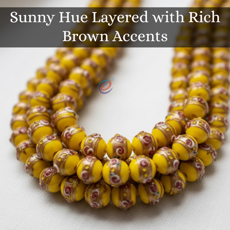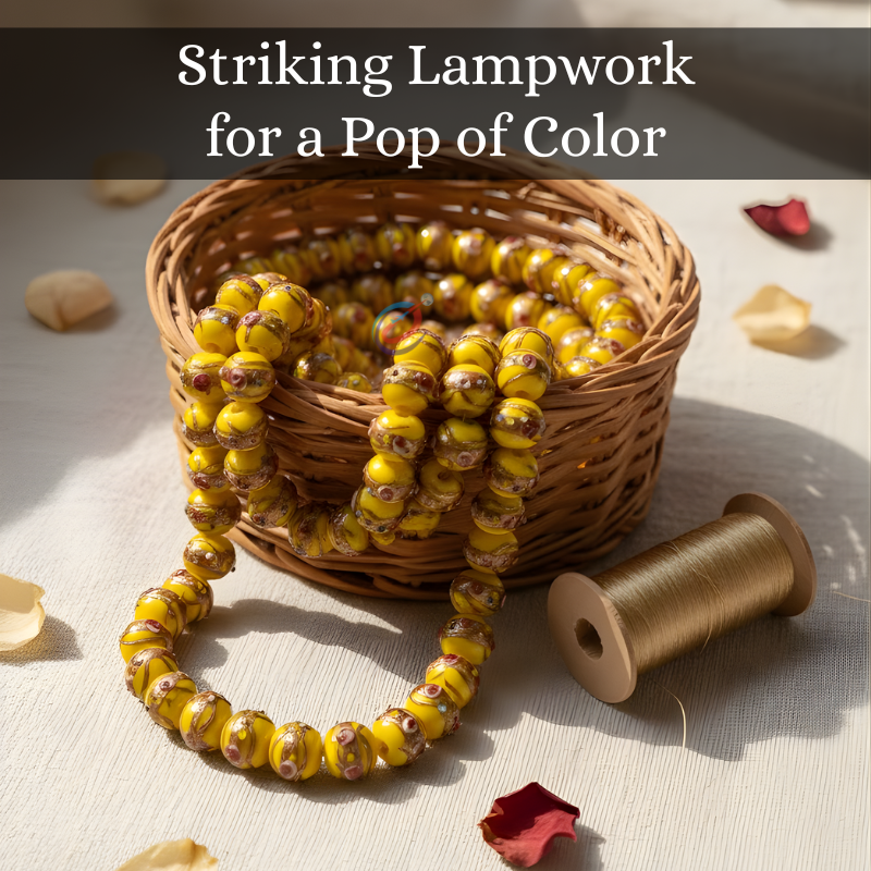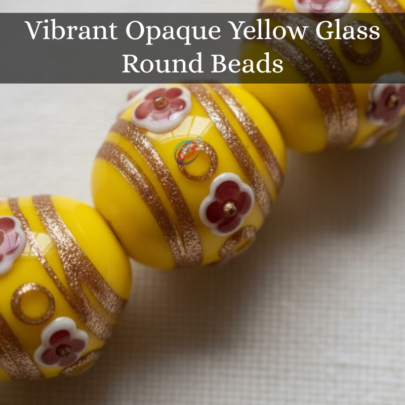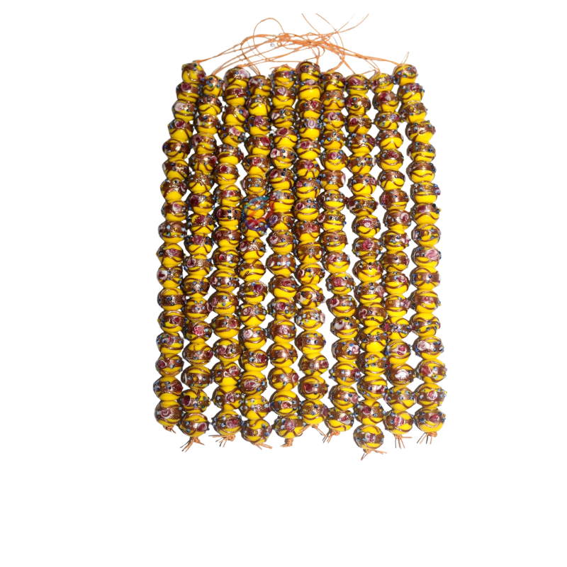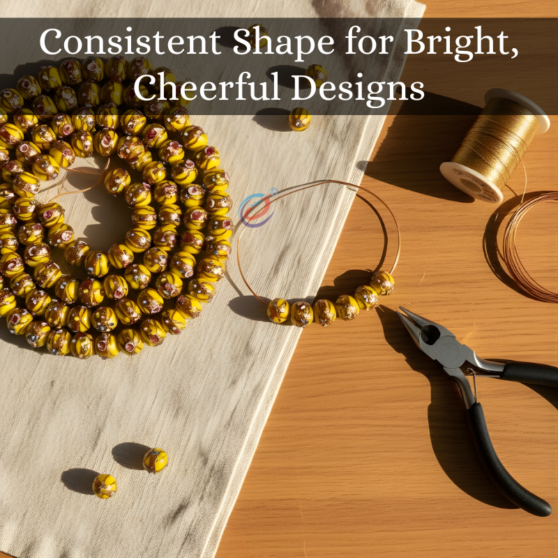 EXCEL EXPORTS Perles d'espacement en verre soufflé à la main jaunes 12 mm | Motif en spirale à pois/feuille d'aluminium | Fil de 8 pouces pour la création de bijoux artistiques