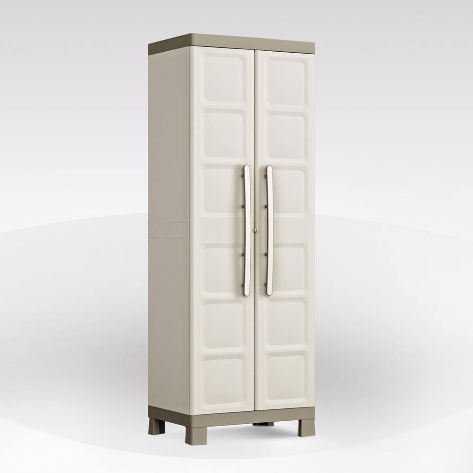 Armoire à étagères en résine EXCELLENCE, 65x45 cm, H. 182 cm, beige et gris tourterelle