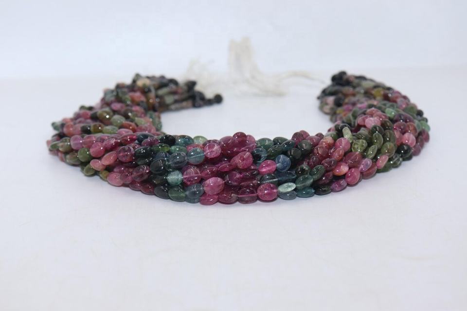 EXCELLENTES Perles Ovales Lisses Multi-Tourmalines 5-7mm Pierre Naturelle Tourmaline Pastèque Taille de Fil de 14 pouces pour la Fabrication de Bijoux