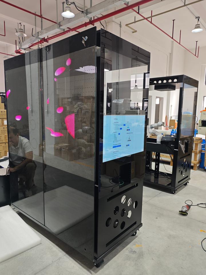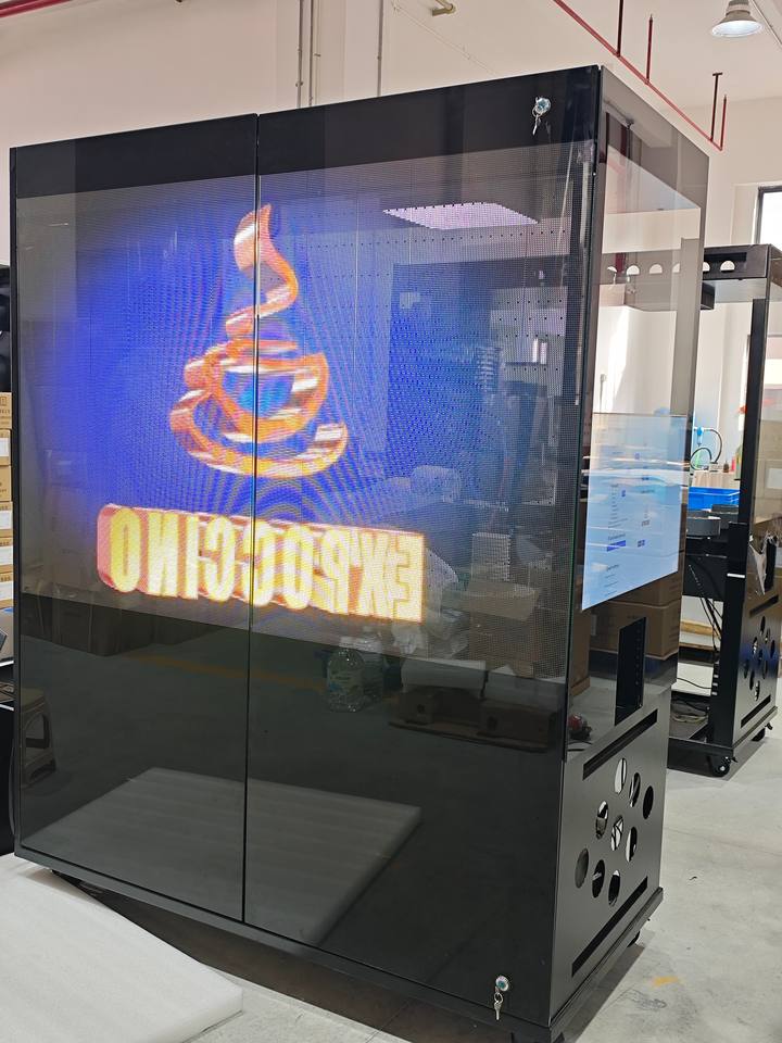 EXPOCCINO Distributeur automatique de café futuriste et machine publicitaire LED avec fonction SDK, refroidissement thermoélectrique, capacité personnalisable
