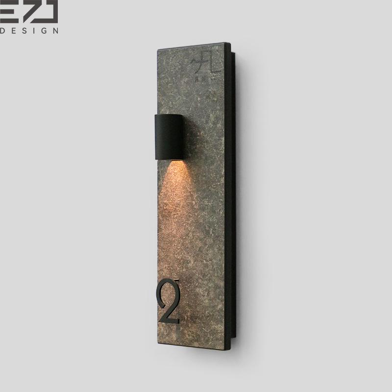 Plaque de numéro de chambre d'hôtel personnalisée EZD en LED, signalétique de chambre de luxe texturée avec éclairage encastré pour hôtels et complexes hôteliers