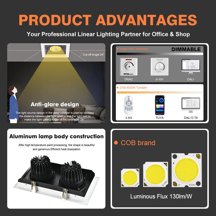 EZELED Projecteur de profil LED intégré à gradation créative 30W 60W 90W pour restaurant, hôtel, intérieur