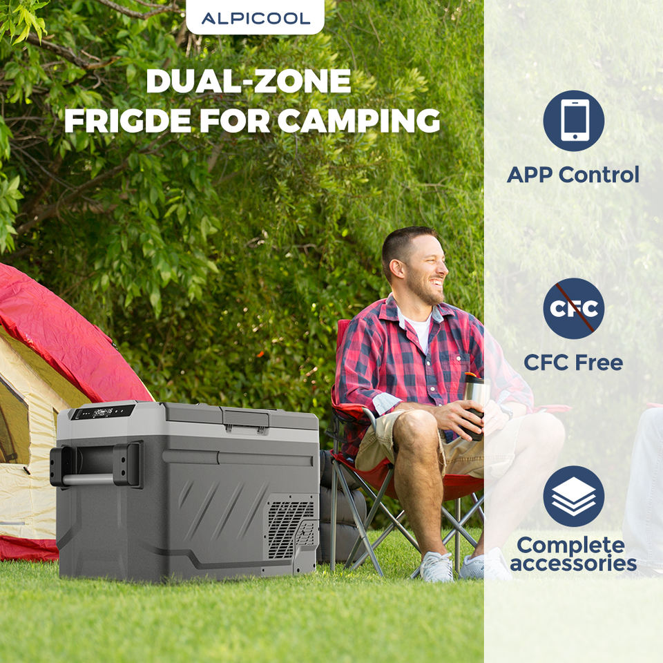 EZG51 Alpicool 12v voiture réfrigérateurs double zones portable congélateur réfrigérateur camping réfrigérateur pour voiture AC DC double usage multi-fonction