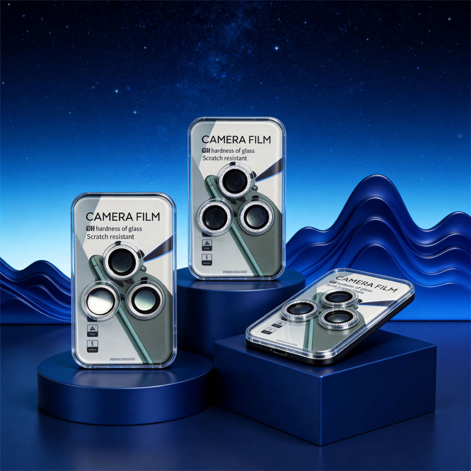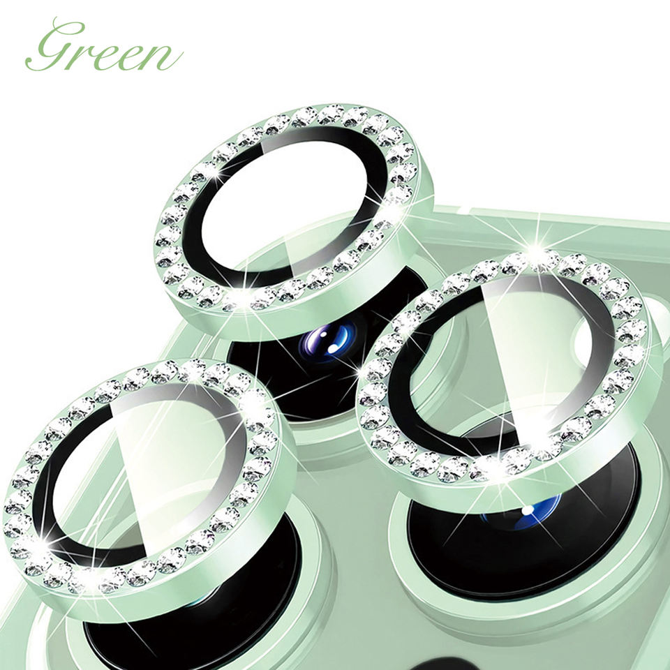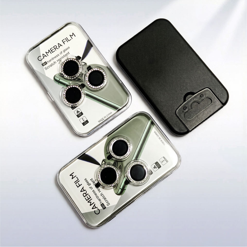 Protection d'objectif d'appareil photo Eagle Eye pour iPhone - Texture CD, styles pailletés et diamantés, 10 couleurs chacune, couvercle d'objectif en verre trempé