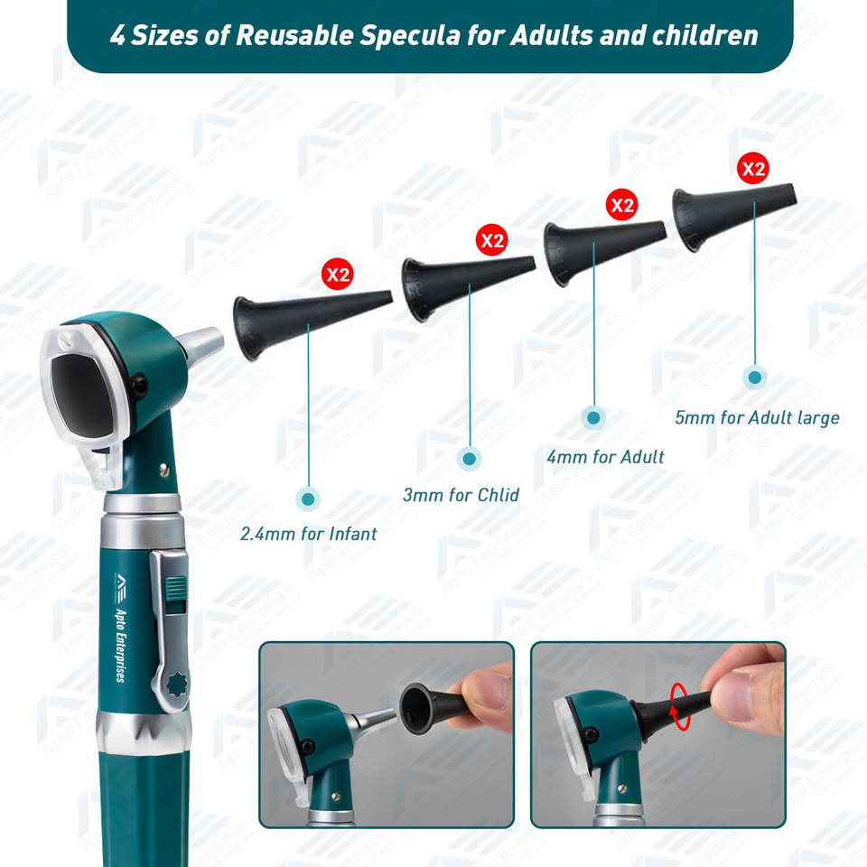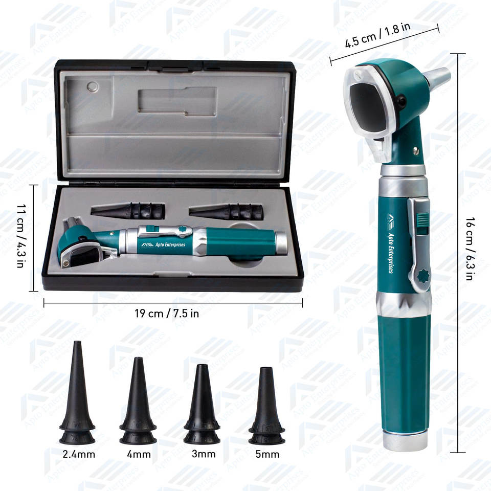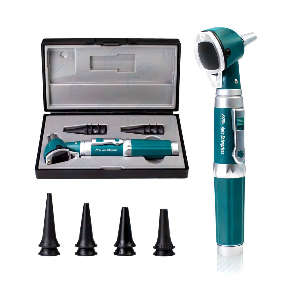 Portée d'oreille avec outil de Diagnostic de poche d'otoscope à fibre optique légère pour les infections de l'oreille avec boîtier en plastique dur couleur verte