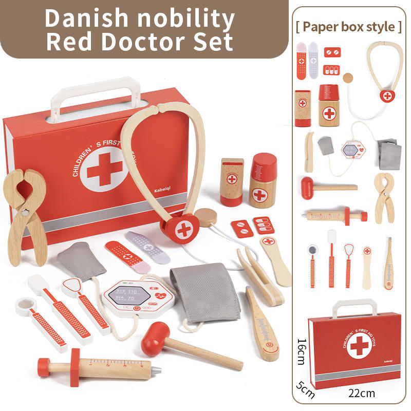 Éducation précoce bois Simulation Playhouse ensemble danois rouge docteur jeu de rôle jouet éducatif Juguetes De docteur ensemble