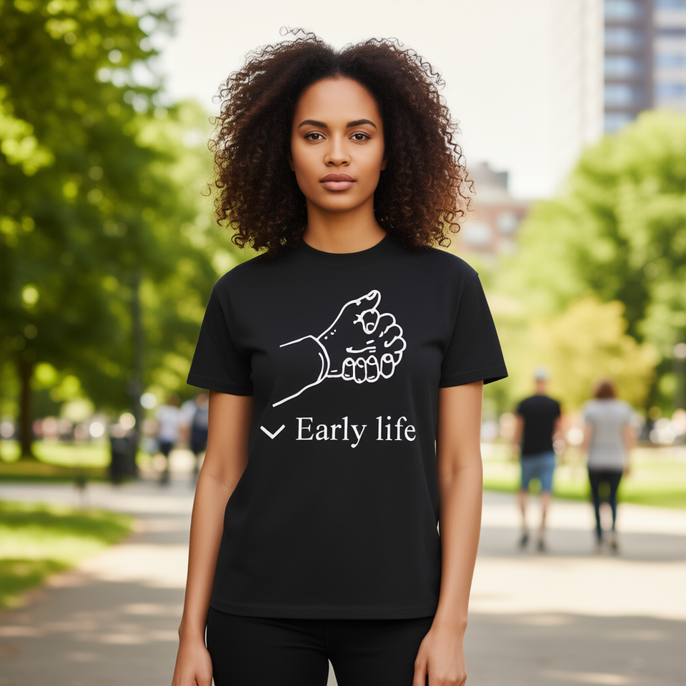 Early Life Hand T-Shirt pour femme en coton noir coupe unisexe