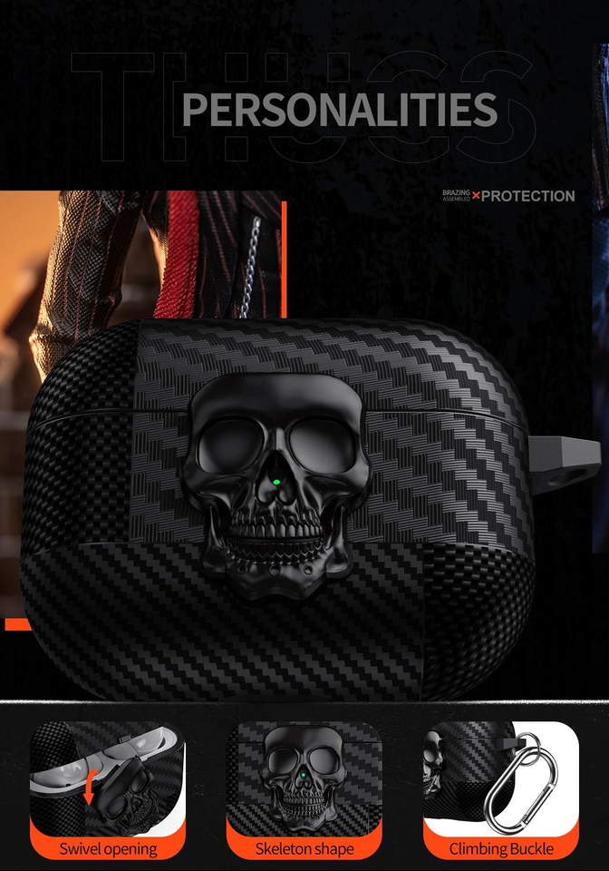 Étui de protection pour écouteurs housse antichoc pour Airpods 1 Pro 2 3 4 ANC housse coque de Texture en Fiber de carbone noire pour Coques AirPods4