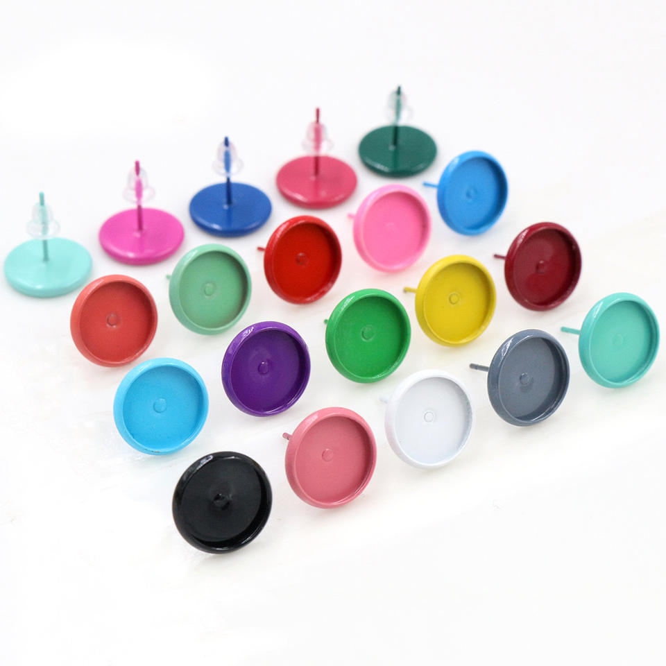 Boucles d'oreilles en acier inoxydable avec cabochon,lunette ronde et plate,base de plateau vierge pour la fabrication de bijoux