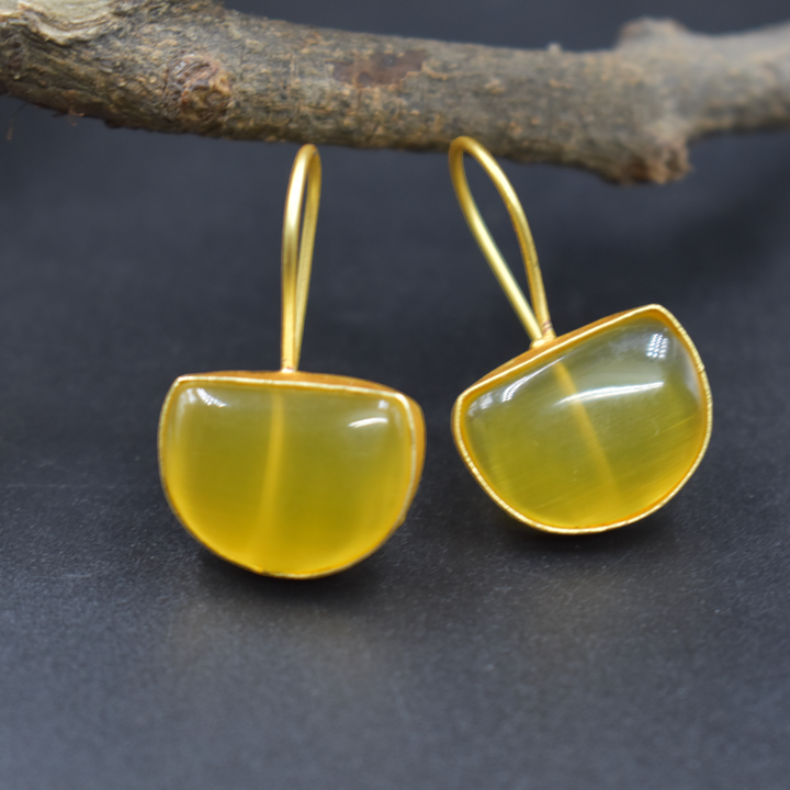 Earring trendy fashion earring Manufacturer Supplier 18k Gold Plated Stainless Natural Stone Round Stone Earrings