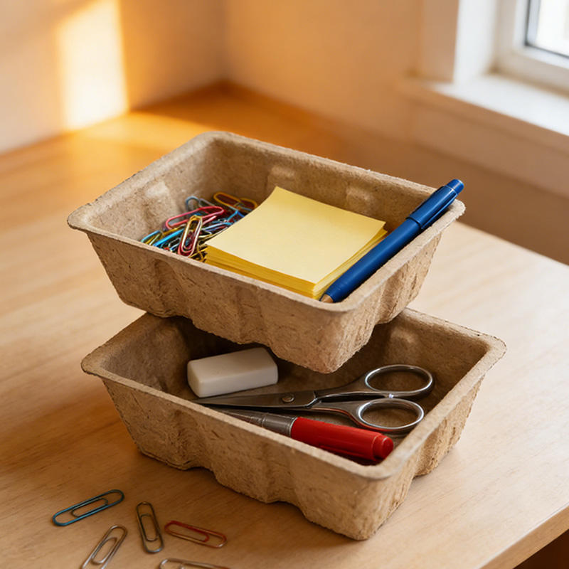Boîte de rangement en pulpe moulée écologique, boîte en papier biodégradable pour une vie durable, organisation de la maison sans déchets, fournitures