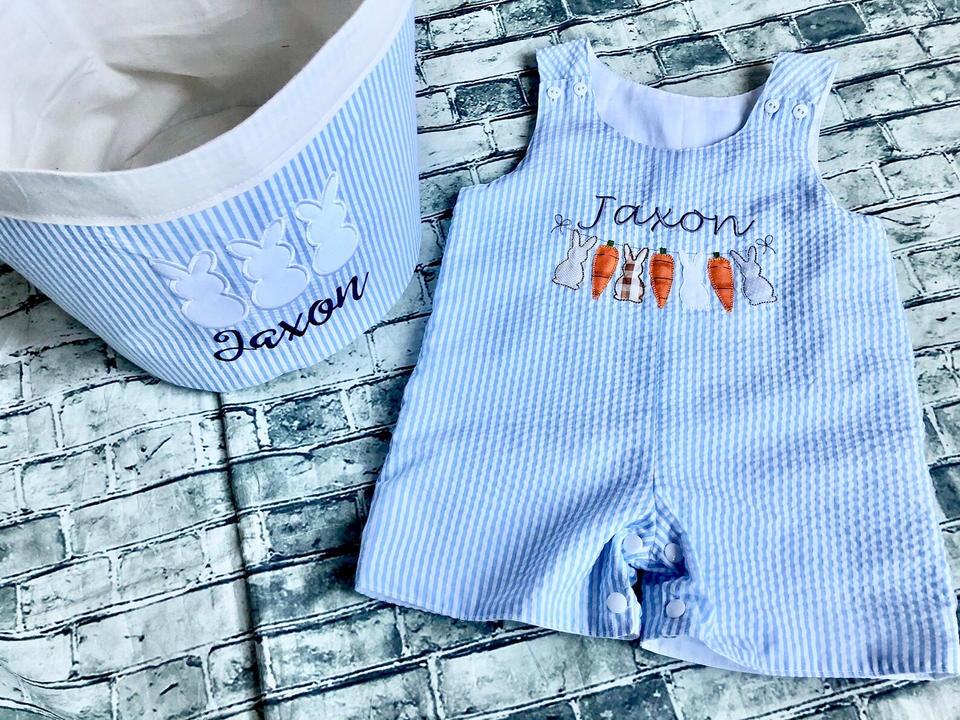 Combinaison courte pour bébé garçon pour Pâques, barboteuse Jon Jon, tenue de Pâques en seersucker personnalisée, vêtements de Pâques personnalisés pour bébé garçon, 1er anniversaire de Pâques