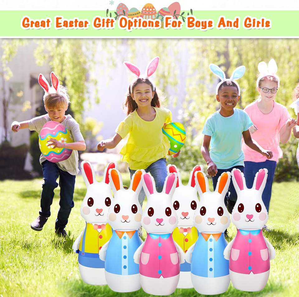 Ensemble de bowling Lapin de Pâques coloré avec 6 quilles et 2 balles, idéal pour les fêtes de Pâques pour enfants et tout-petits