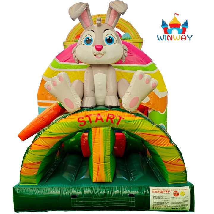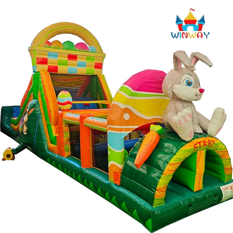 Parcours d'obstacles gonflable en PVC sur le thème du lapin de Pâques, parc d'aventure commercial, chasse aux œufs, aire de jeux, location de fête, divertissement en plein air
