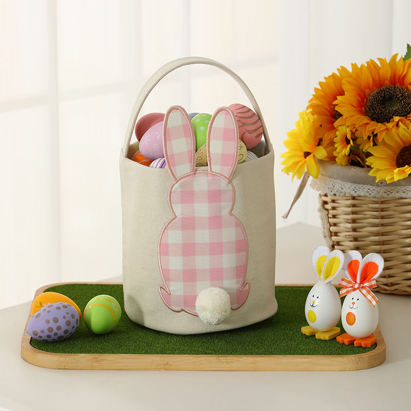 Sac de Pêche aux Œufs de Pâques à Carreaux Roses Lapin de Pâques Cadeau de Printemps Festive Sac de Pêche aux Œufs de Pâques en Toile à Carreaux Lapin de Pâques