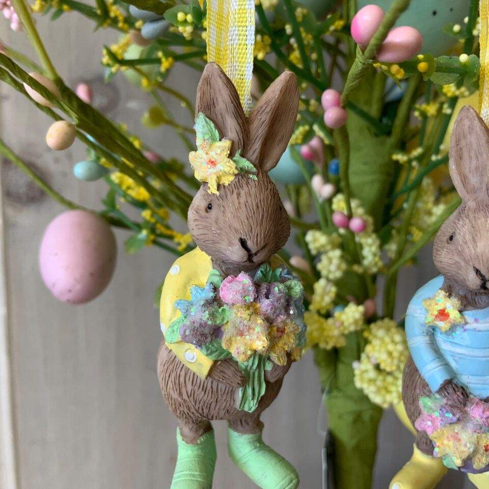 Décoration suspendue en résine de lapin de Pâques, faite à la main, peinte à la main, ornements de lapin pastel