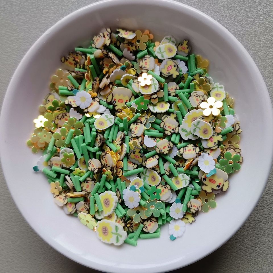Décorations de Pâques en argile polymère, tranches de poussins, décorations de printemps, garnitures pour slime, accessoires de bricolage