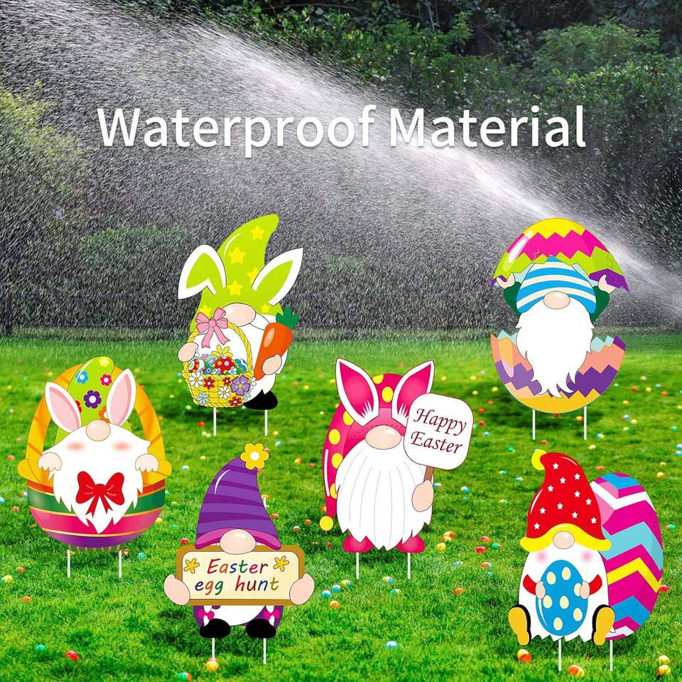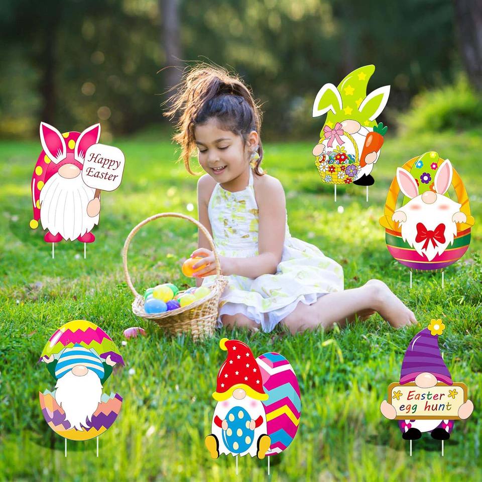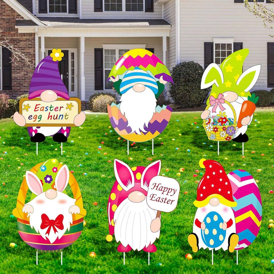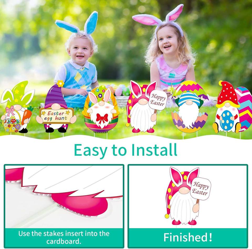Panneaux de cour de Pâques, décorations extérieures en carton de signes de jardin, ornements de décoration de fête de 13 pouces piquets de pelouse pour la chasse aux œufs de Pâques