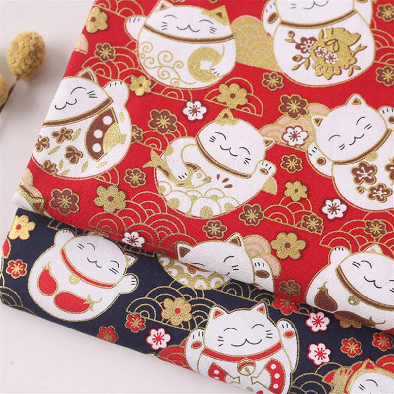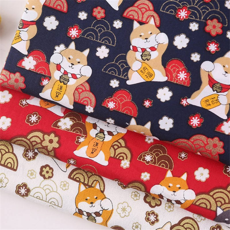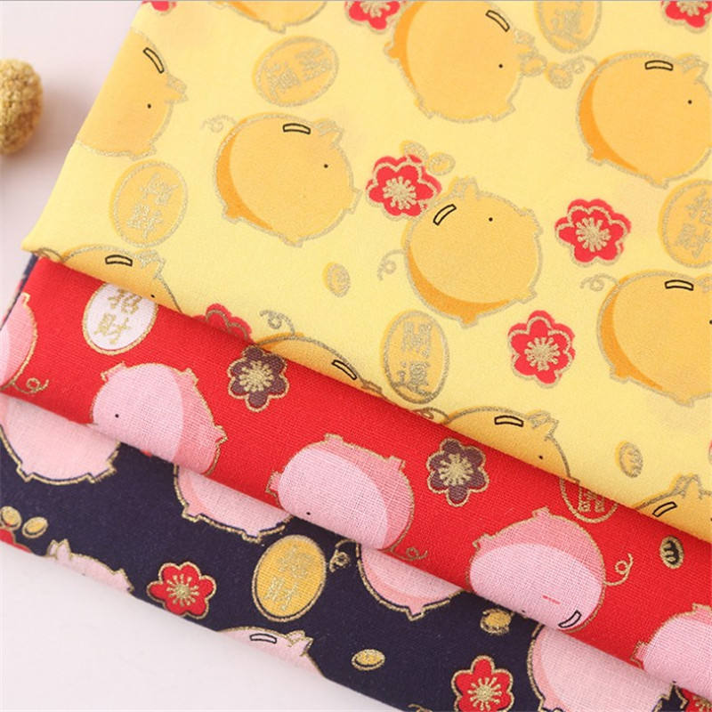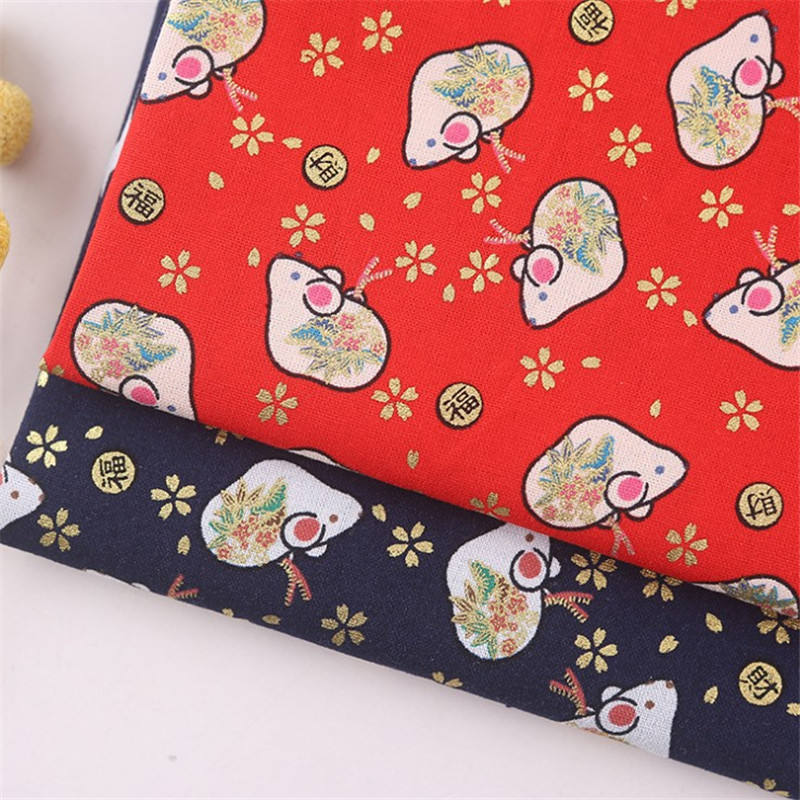 Tissu en coton pur à motif de dessin animé style oriental, estampage métallique pour la décoration de vêtements pour enfants
