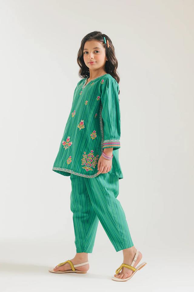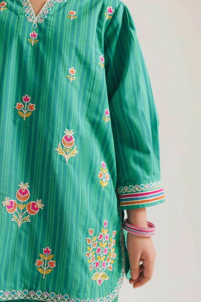 Eastern Ethnic Kurta for Kids Girls Casual High-quality Quick Dry Moisture Wicking Indian Traditional Green Color Embroidery