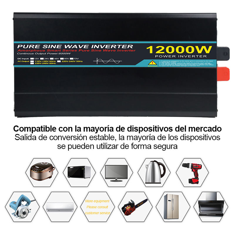 Convertisseur solaire Easun 12KW Onde sinusoïdale pure DC 12V AC 220V/110V Monophasé Convertisseur de puissance automobile GX-12KW