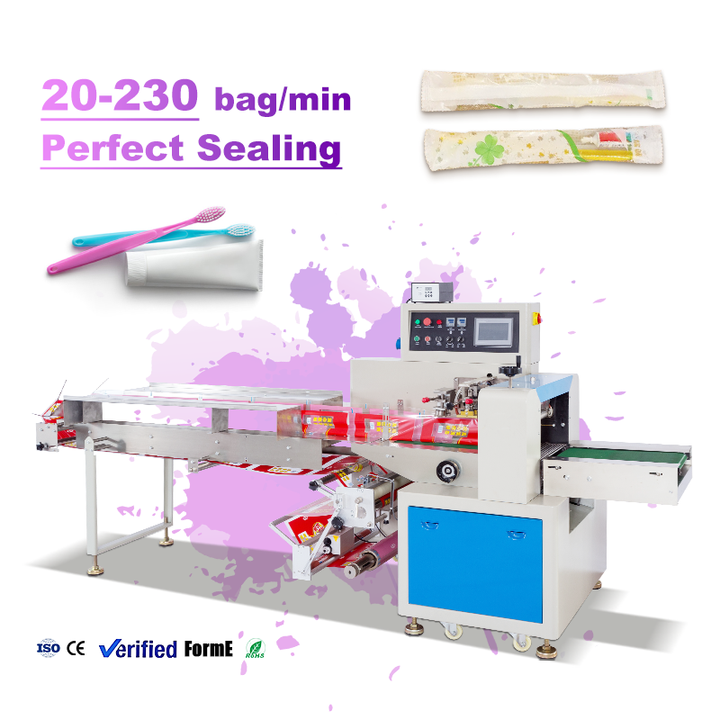 Machine d'emballage automatique à réglage facile pour articles de toilette jetables, brosses à dents, peignes, serviettes et oreillers