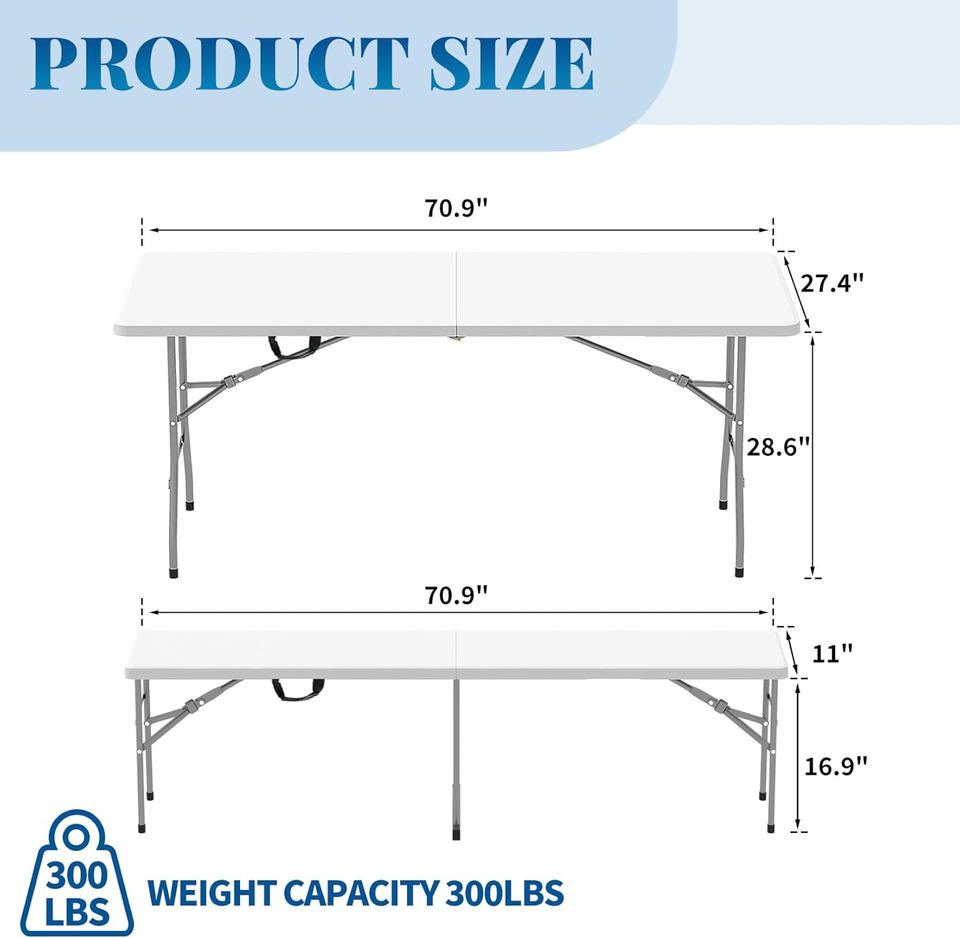 Ensemble table et banc pliables en plastique pour le camping, facile à transporter et à ranger Offre Spéciale l'extérieur, 6 pieds, 8 personnes