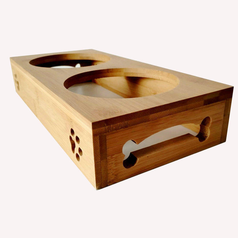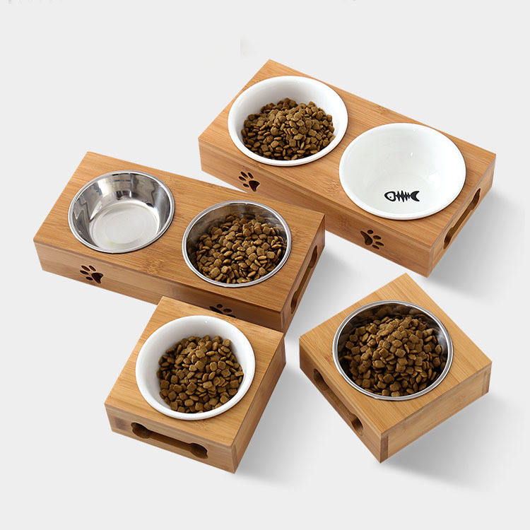 Bol pour animaux de compagnie facile à nettoyer et antidérapant, support en bois surélevé pour chien et chat