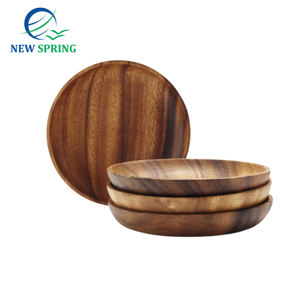 Assiettes à dîner rondes légères en bois faciles à nettoyer plateaux de service classiques incassables pour collation dessert dîner