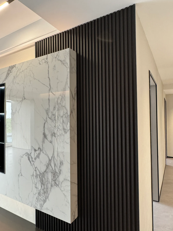Installation facile Décoration intérieure décorative Panneaux muraux acoustiques laminés cannelés en Wpc