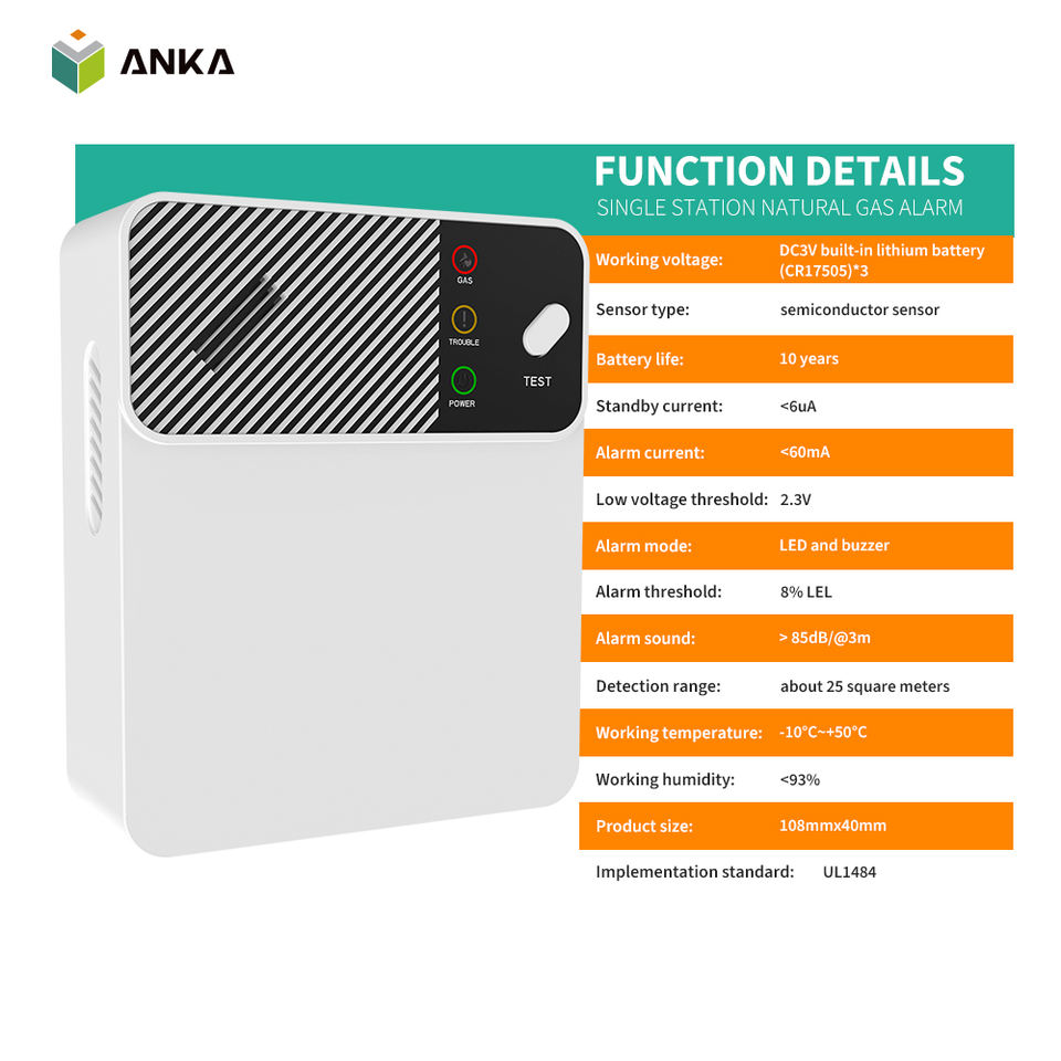 Détecteur de gaz naturel facile à installer, autonomie de 10 ans, boîtier ABS, détecteur de méthane et de propane pour maison, cuisine et camping-car
